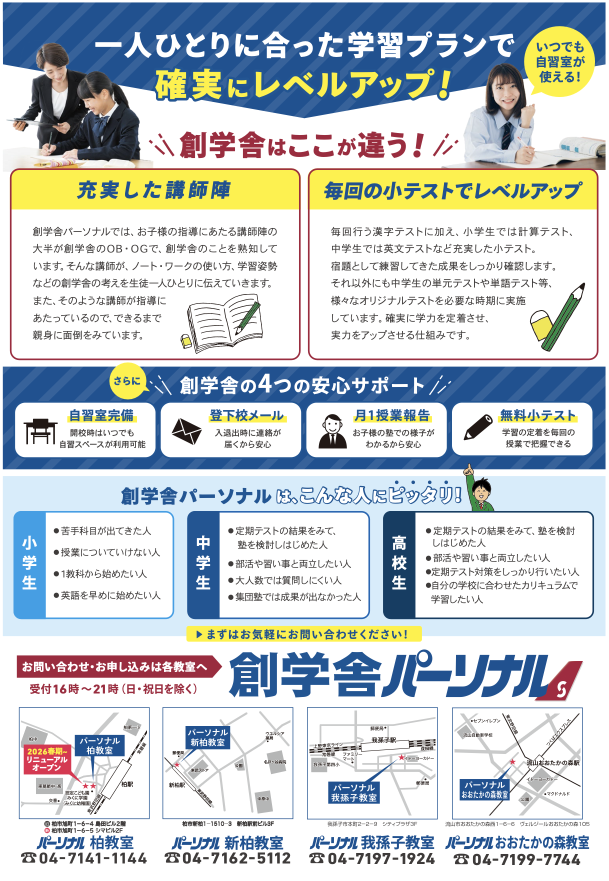 創学舎の講師陣の授業力は間違いなく全国トップクラスです。この力をお子様の成長を支援する力に変えていきたいと思います。