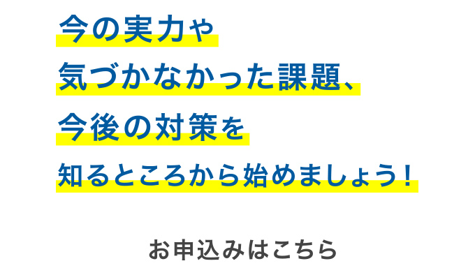 教科書英文テストをはじめとして、適度な緊張感を常に持っていただきたいため、授業毎に様々な小テストを実施します。また、年数回の模擬テストを実施します。日常の学習を含めて、生徒一人ひとりの状況を細かく把握し、進路指導も万全です。